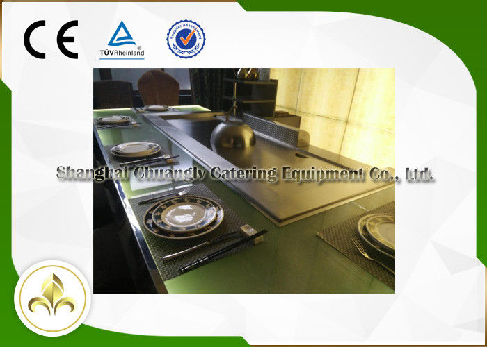 | Nazwa produktu | Green Light Glass Table Stalowa rama Dostosowany grill gazowy Teppanyaki Hibachi |
